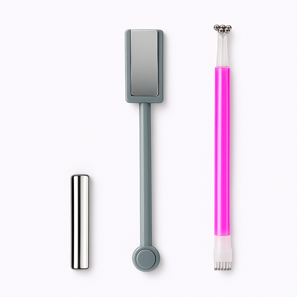 Take your cat eye gel nail designs to the next level with this professional 3-in-1 Magnetic Nail Art Stick Set, carefully curated for maximum versatility and creativity. This all-in-one set includes a dual-ended rectangle & circular magnet, a pen-style flower-head magnet, and a compact bar magnet—each offering unique pattern effects for endless nail art possibilities.