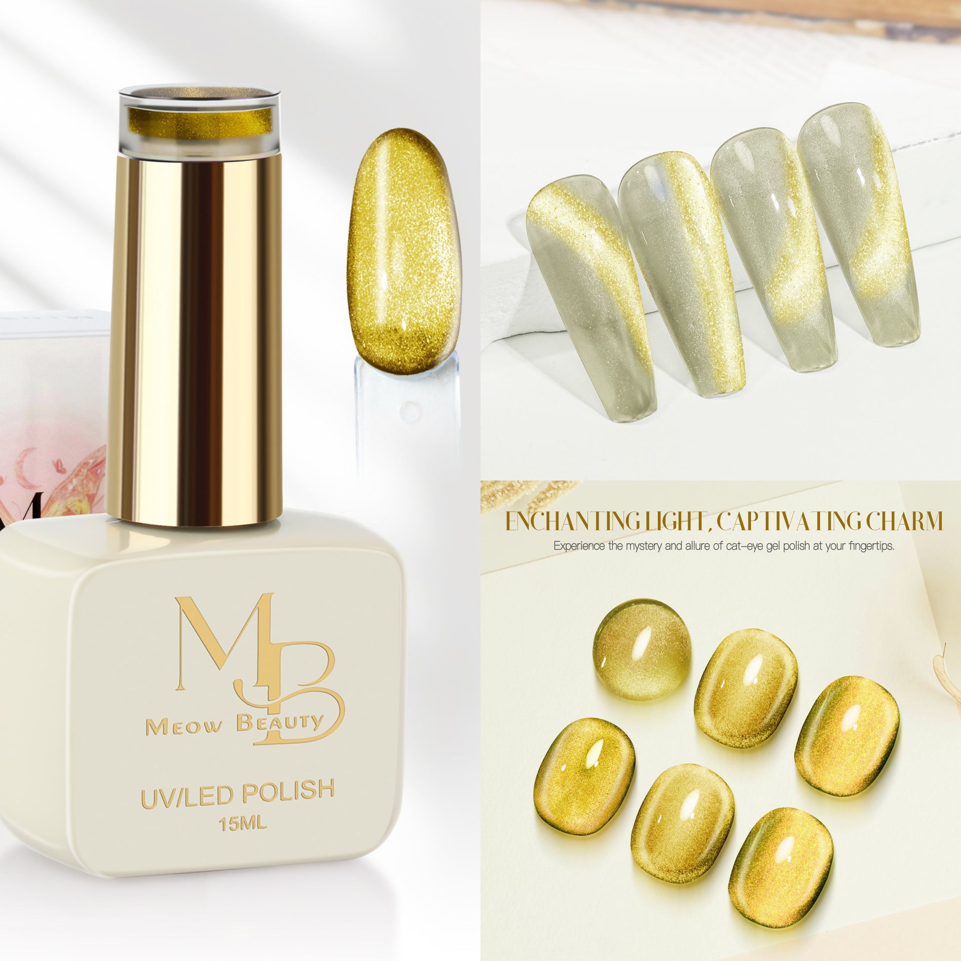 • Magnetic Shimmer Effect – Creates a radiant cat-eye line for a glowing, reflective finish.
