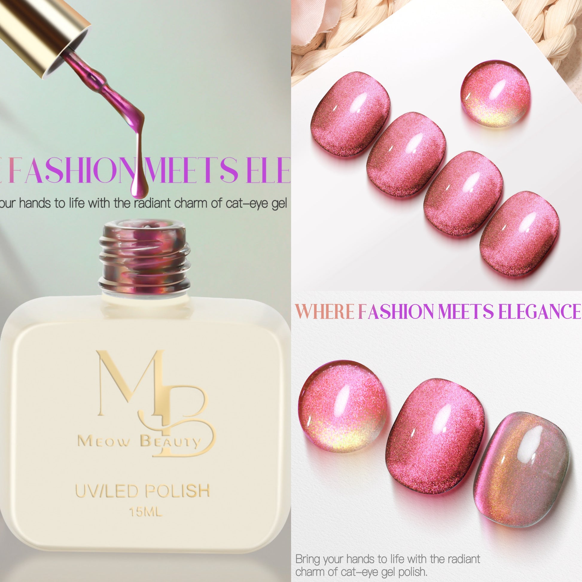 Meow Beauty Pink Cat Eye Gel Polish – Radiant Rose Glow