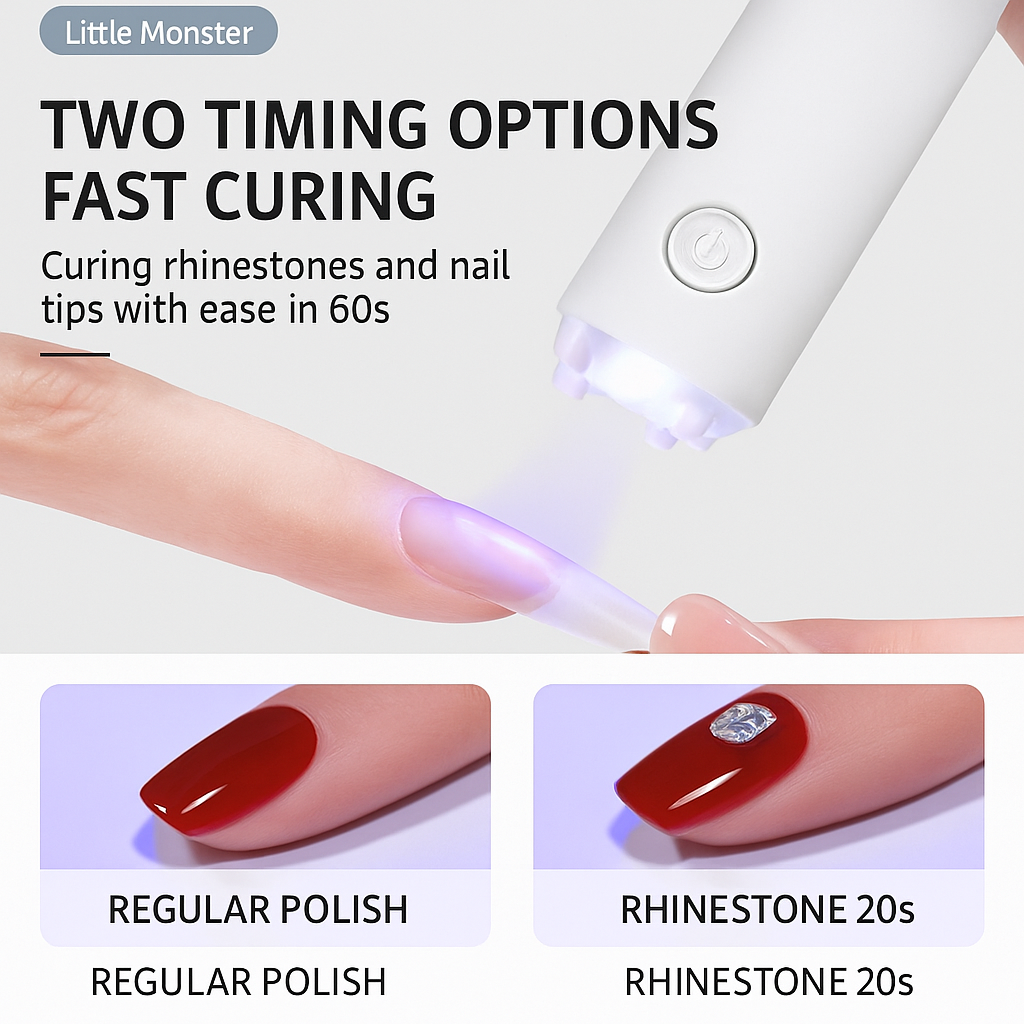 Rechargeable Mini UV LED Nail Lamp – Little Monster Quick Cure Light with Dual Timer, Compact & Portable for Gel Polish, Nail Tips, Rhinestones, DIY Manicure on the Go