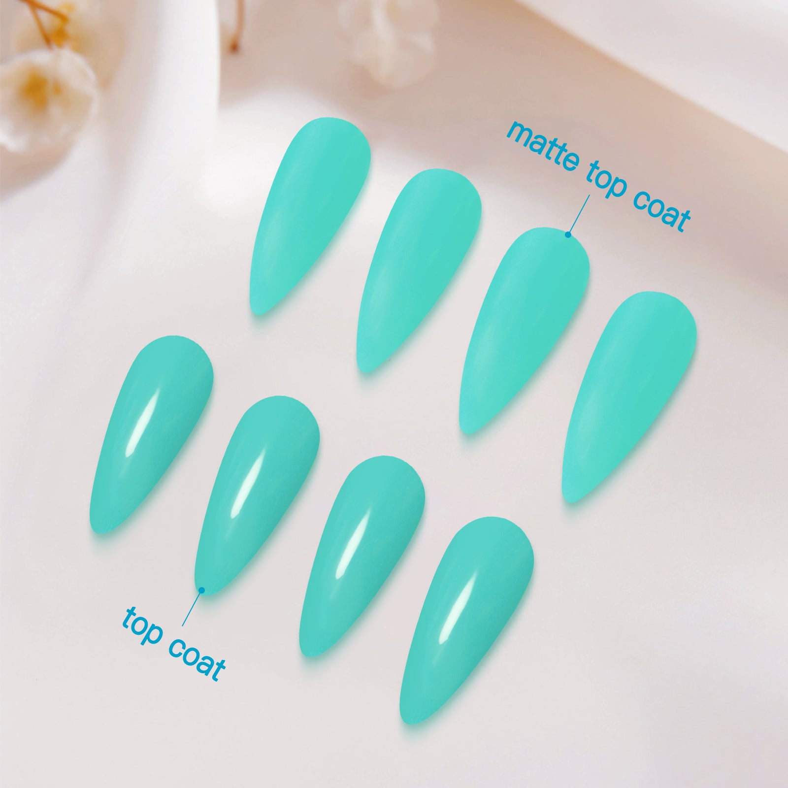 3. Apply 1–2 coats of aqua gel polish, curing after each layer.