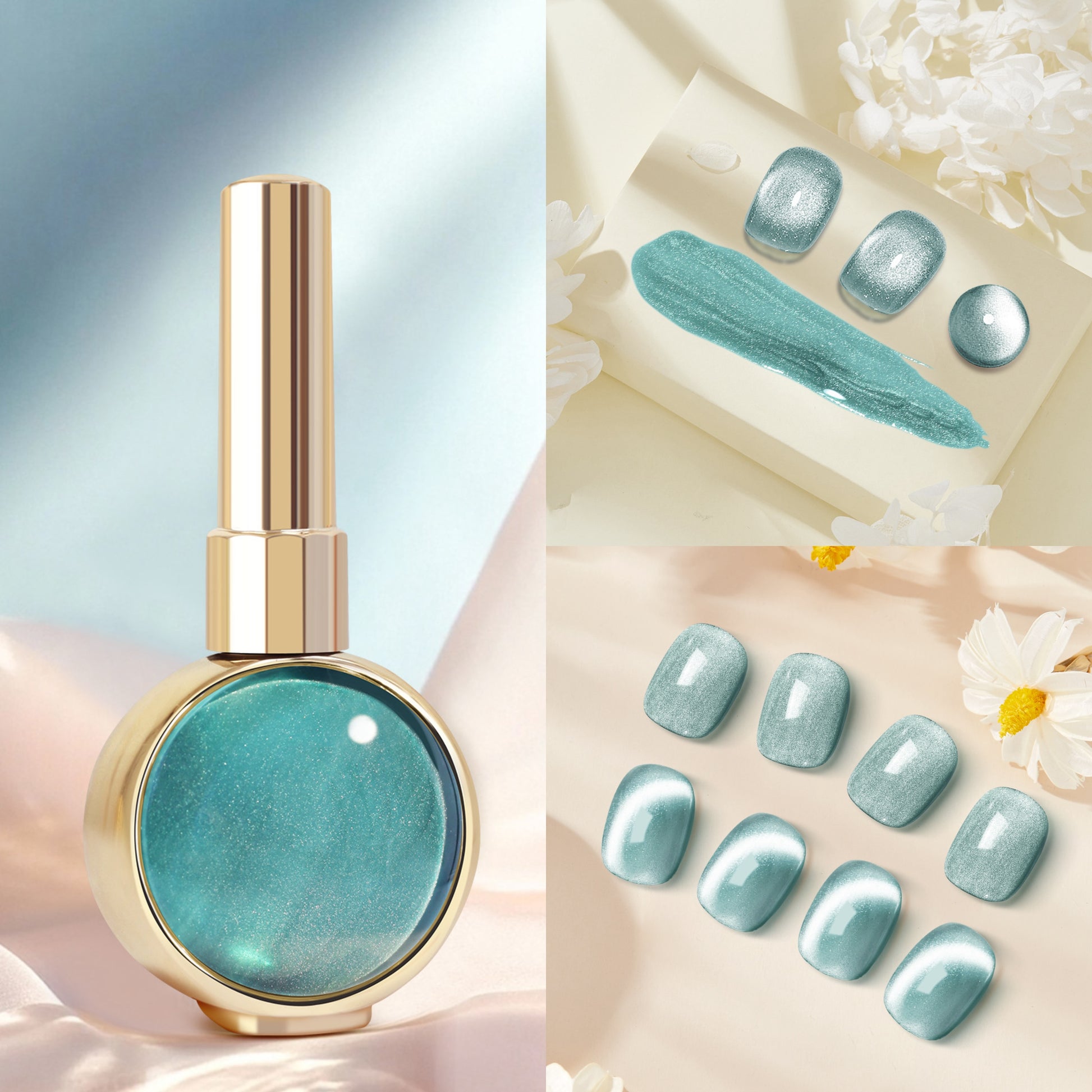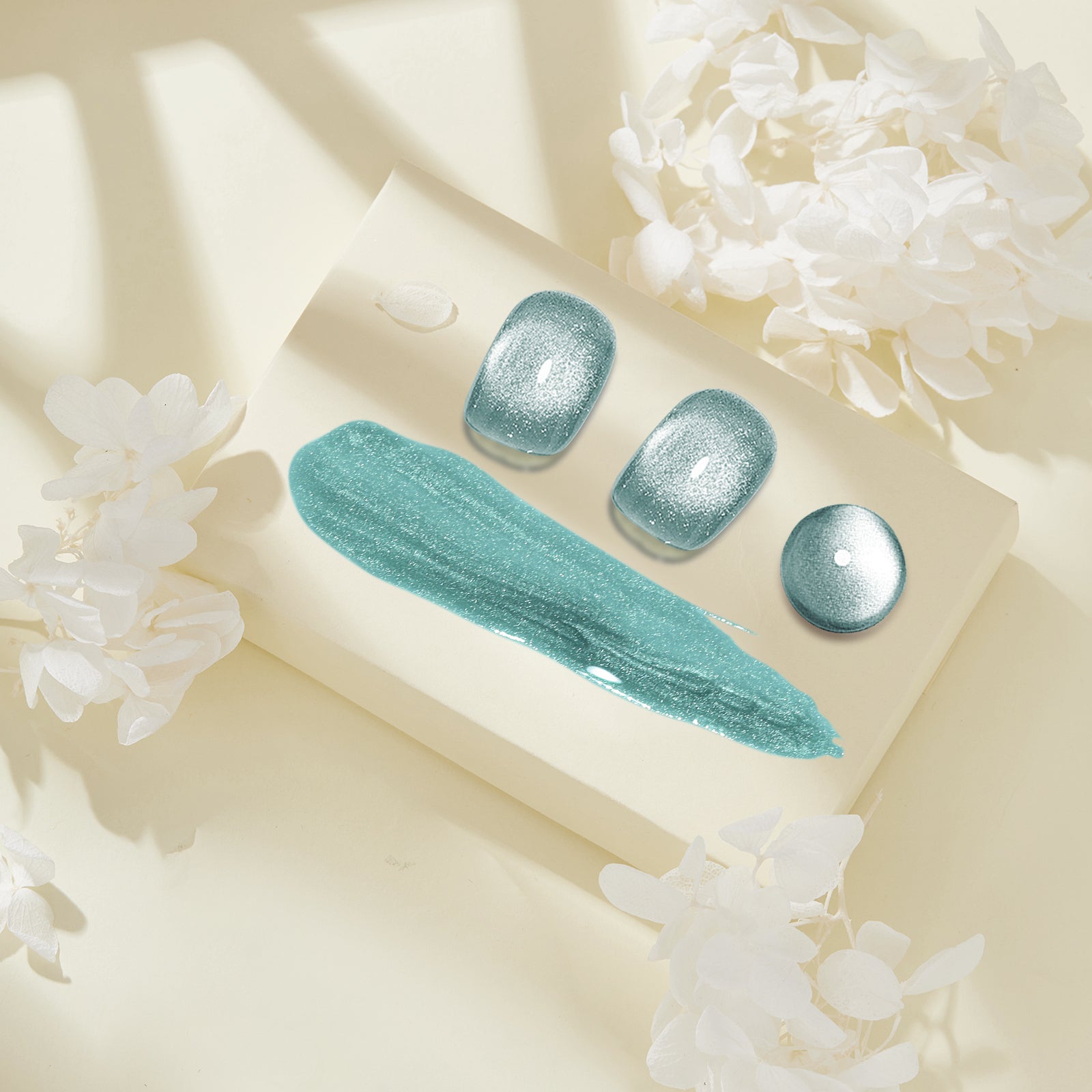 Meow Beauty SR Icy Blue Cat Eye Gel Polish – Magnetic Light Beam Effect | Cool Metallic Shine
